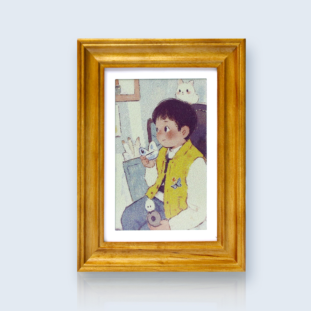 7.3 inch Spectra 6 full color ePaper photo frame, supporting mobile phone app to transfer pictures to the device via BlueTooth, supporting automatic slideshow or manual mode, built-in Li battery, Type C for charging.